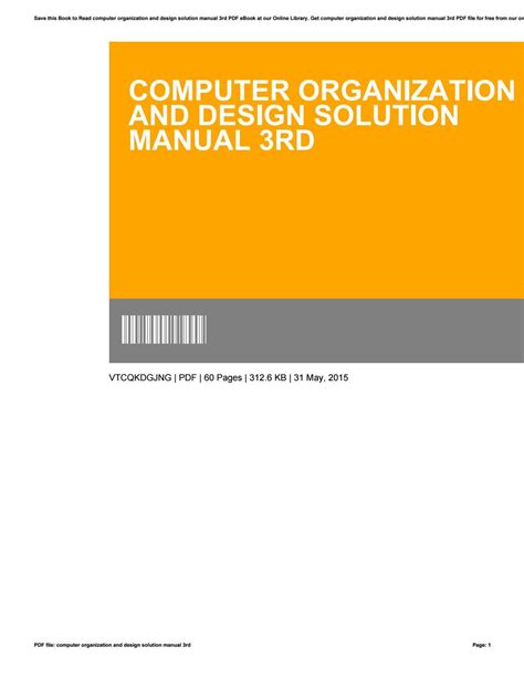 Download Computer Organization Design Solutions Manual Paperback